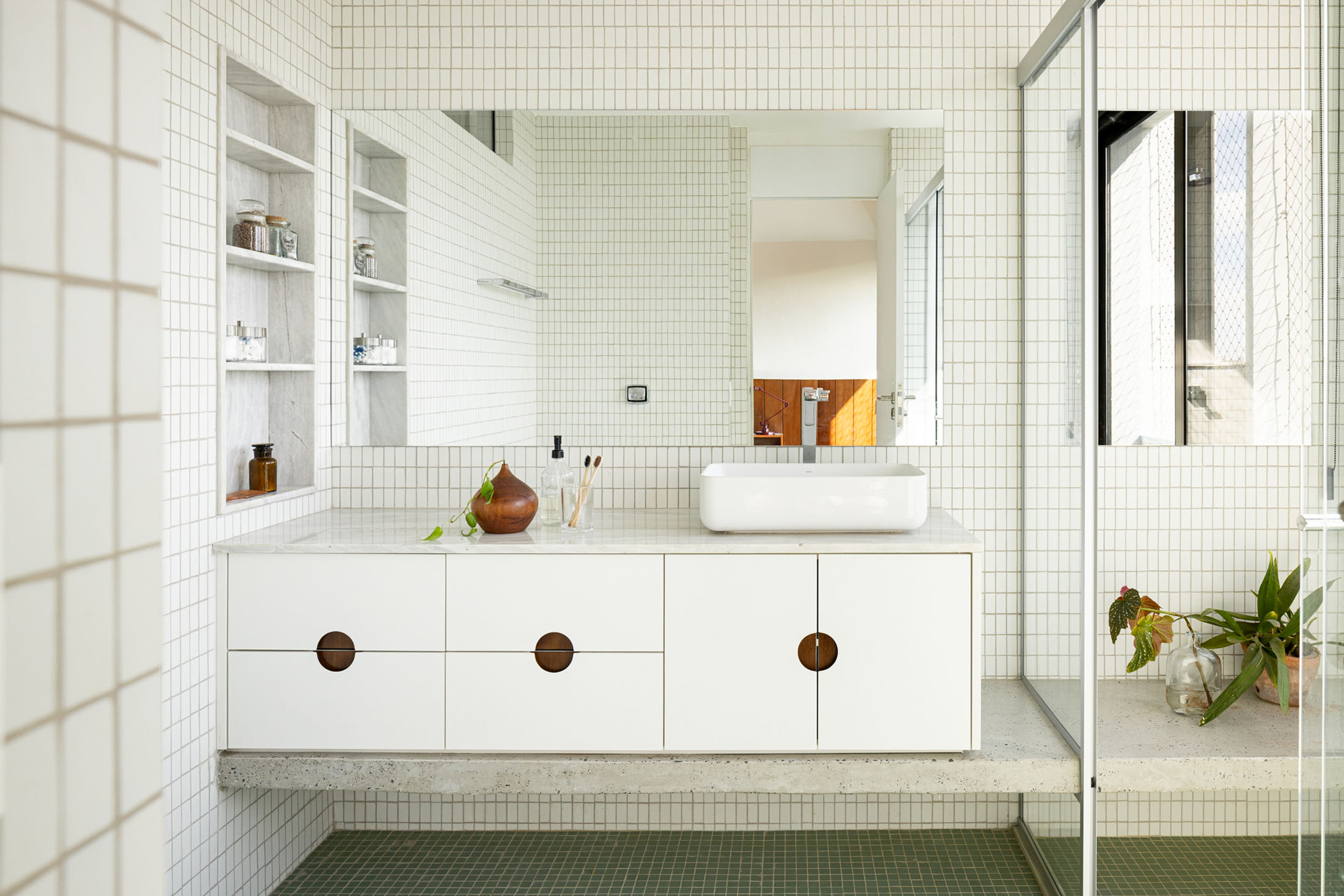 De forma sutil, o projeto busca um diálogo entre o modernismo brasiliense e o paulista, refletido na materialidade e na organização espacial. Assim, a proposta tira partido do concreto aparente, móveis em madeira e piso em pastilhas cerâmicas, elementos presentes em projetos dos clássicos da arquiteta Lina Bo Bardi, como a Casa de Vidro e o MASP.